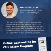 Für unsere CUR Executive MBA-Gastvorträge laden wir regelmäßig Entscheiderinnen, Vordenker und Personen mit Expertise aus Wirtschaft, Wissenschaft und Gesellschaft ein und diskutieren Themen am Puls der Zeit. Es freut uns sehr, dass wir in diesem Rahmen zuletzt Hendrik Witt, Rechtsanwalt bei der Data & Tech-Kanzlei Witt Legal, begrüßen durften.